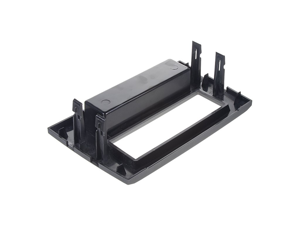 Plastový adaptér v šedé barvě slouží pro montáž 1DIN neoriginálního rádia.