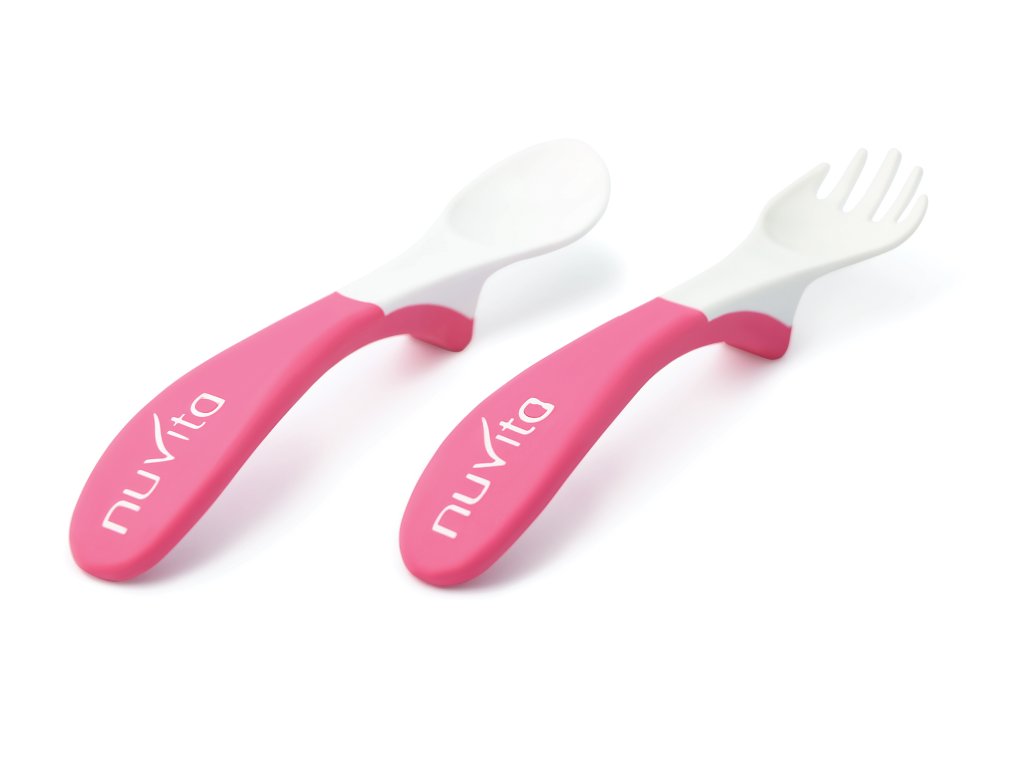 Sada lžíce a vidličky s ergonomickou měkkou gumovou rukojetí pro lepší uchopení.