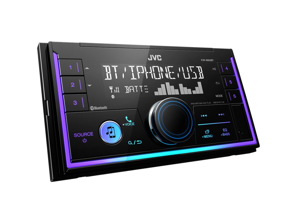 JVC 2DIN autorádio bez mechaniky/Bluetooth/USB/AUX/Multicolor