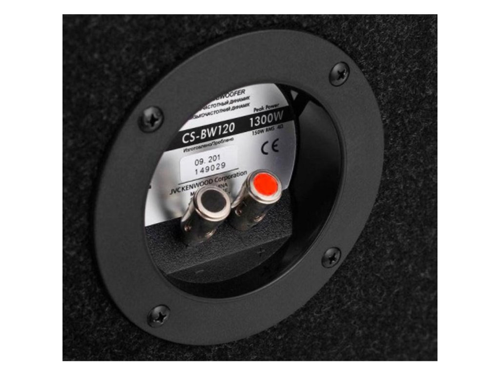 JVC subwooferový box bez zesilovače a reproduktorem o průměru 300 mm.