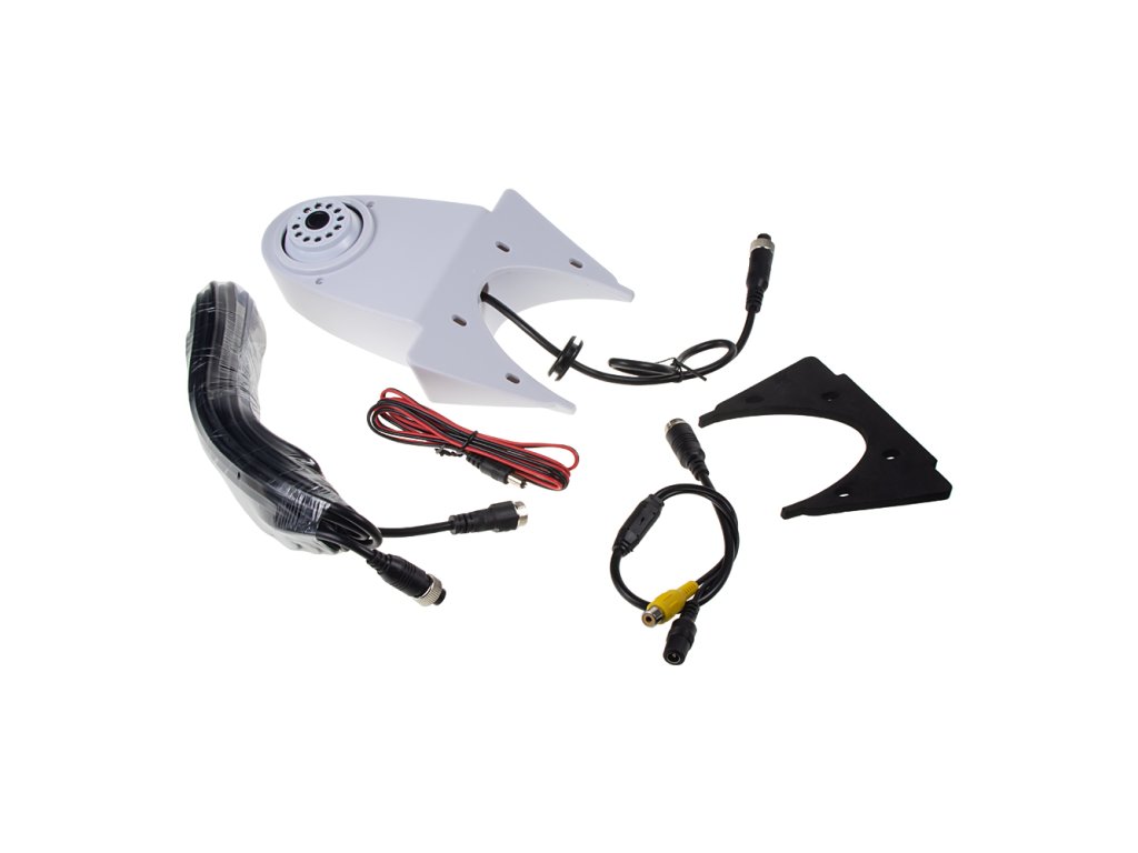 Balení obsahuje: kameru, instalační materiál (šrouby, samolepící pěnová podložka), 10 m 4PIN kabel, redukce 4PIN/RCA, RCA spojka, napájecí kablík