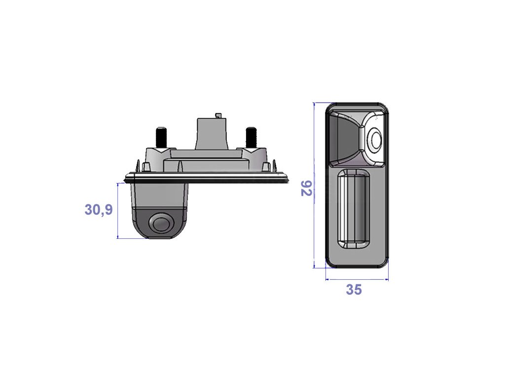 Barevná kamera integrovaná do ovladače kufru. Vhodné např. pro kombinaci s monitorem, nebo s adaptéry mi-xxx pro připojení k originální navigaci. Montáž: Vyjmete spínač kufru nad zadní SPZ a místo něj vložte do originálního otvoru tuto kameru, která zároveň nahradí původní spínač kufru. ...