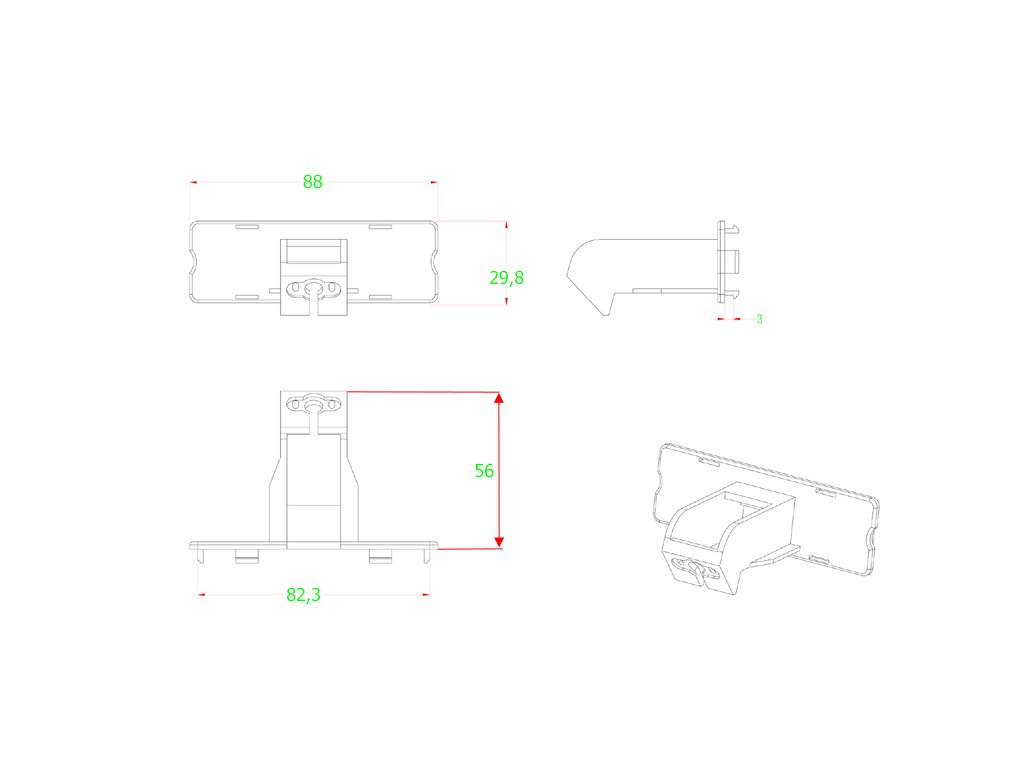 Barevná kamera do zadních dveří Suzuki Swift. Je určena pro zabudování do otvoru pro kameru (zaslepen záslepkou) nad zadní registrační značku. Vhodné např. pro kombinaci s monitorem, nebo s adaptéry mi-xxx pro připojení k originální navigaci. Montáž: Vyjmete záslepku nad zadní SPZ a místo ní vložíte do originálního otvoru tuto kameru.