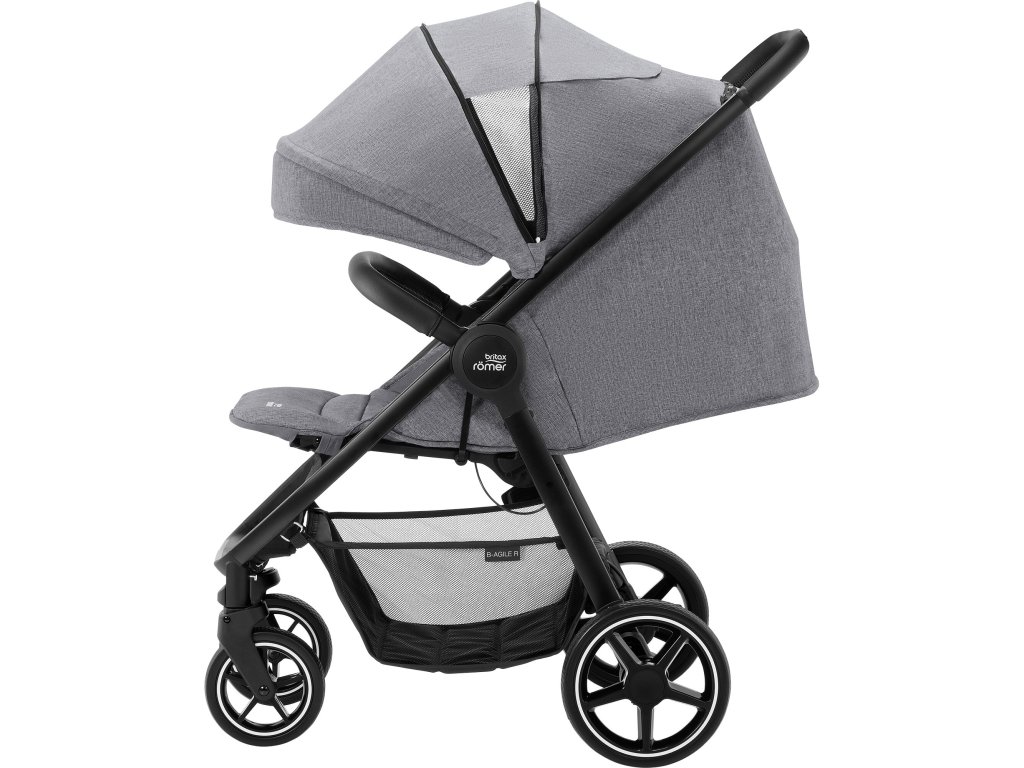 Kočárek B-AGILE R je ten pravý pro vaše každodenní výlety. Není to jen kvůli jeho super štíhlé konstrukci s šířkou pouhých 56 cm, ale také díky jednoduché obsluze. Kočárek zvládnete jednoduše složit a pořád máte jednu ruku volnou, abyste udrželi své dítě. Ve složeném stavu kočárek sám stojí a má velmi kompaktní rozměry, díky čemu předejdete jeho ušpinění a snadno ho uložíte, kam je potřeba. Když se s B-AGILE R rozjedete, kvalitní, robustní, gumová kola, odolná proti defektu, měkce kopírují terén a jízda s tímto modelem i přes výmoly a hrboly je doslova balada.