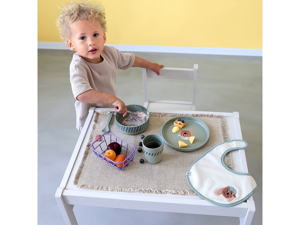 Dětské stolní nádobí v krásném designu, vyrobené za použití trvale udržitelných zdrojů, je určené pro děti od 12 měsíců.