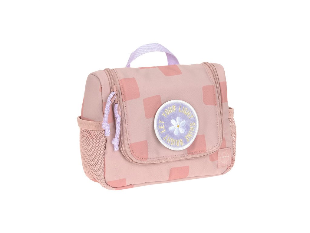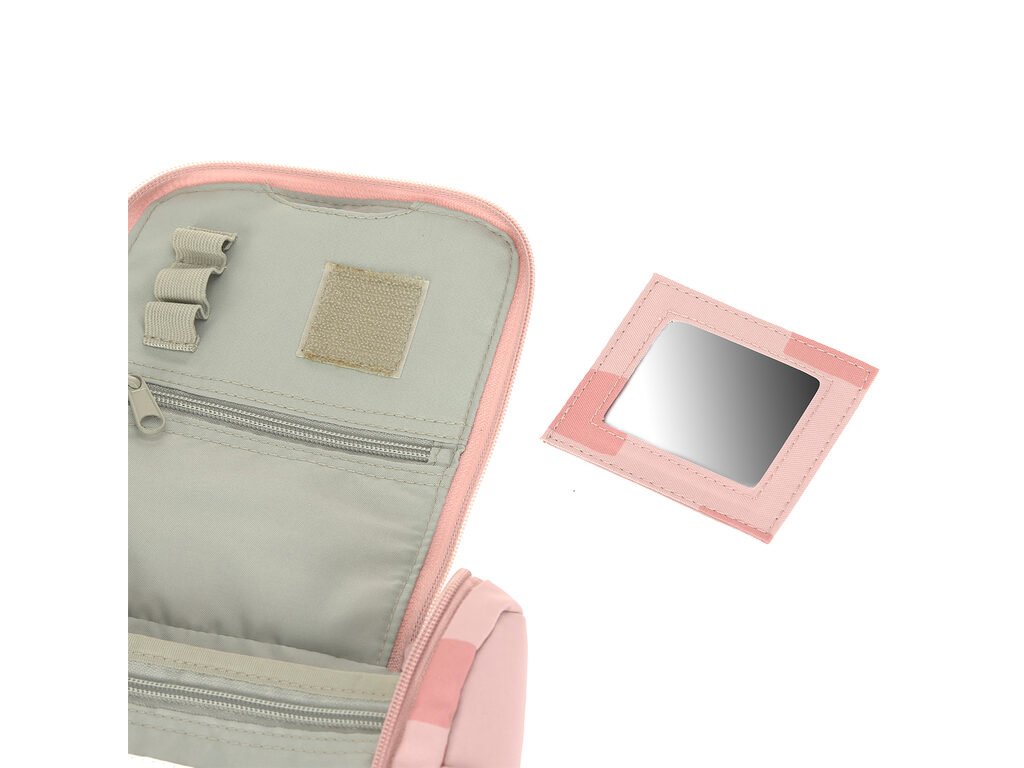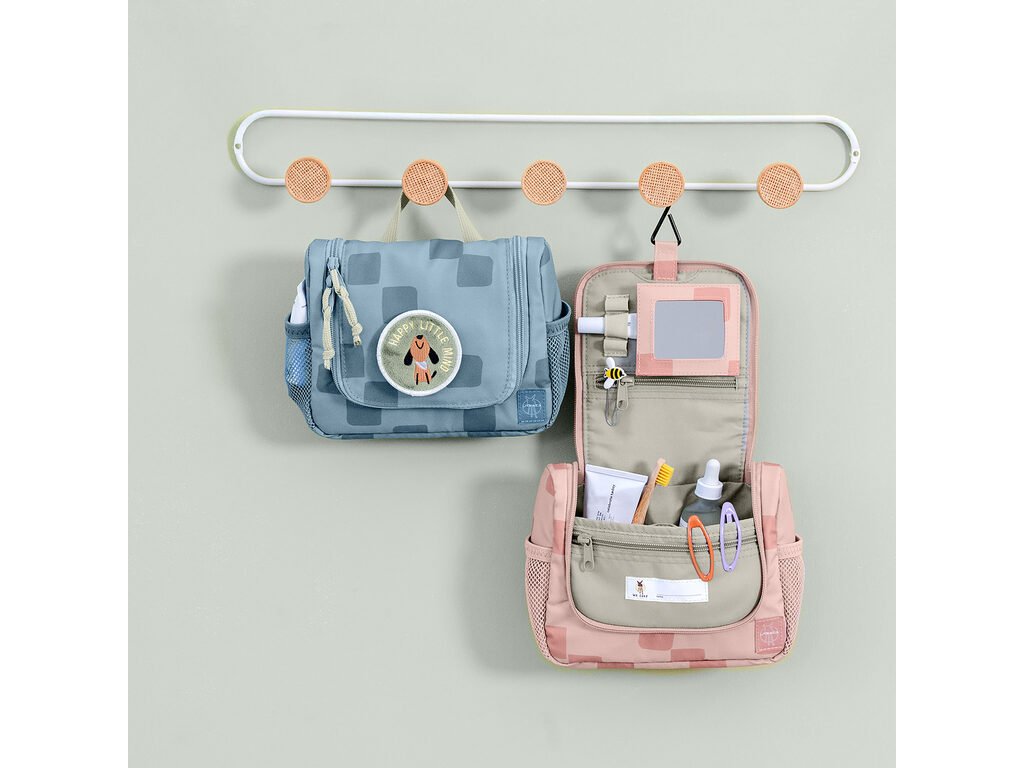 obrázek na přední straně washbagu, který je možné přichytit pomocí patentky