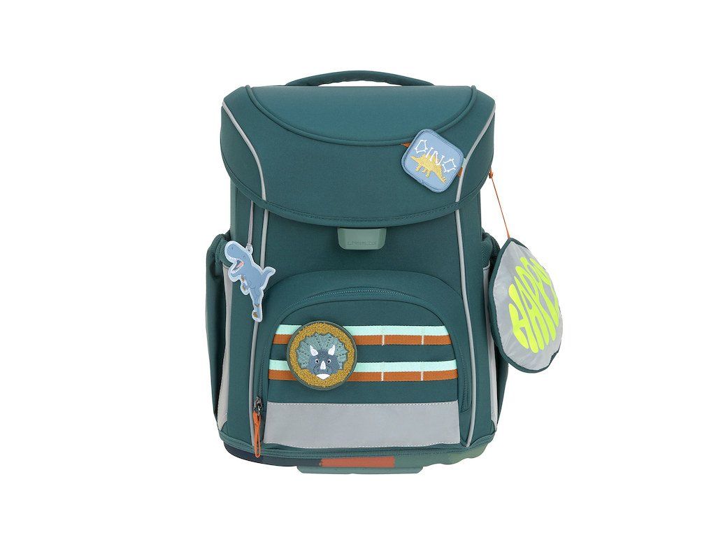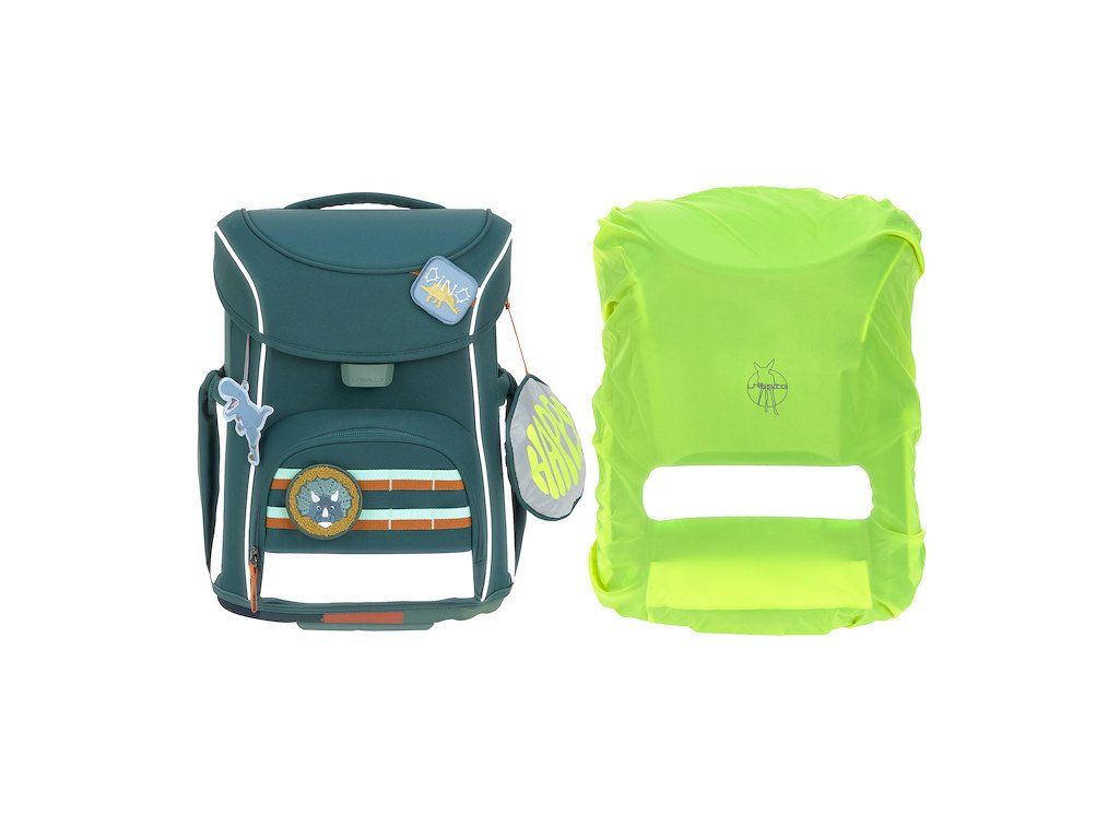 Praktický sedmidílný školní set obsahuje: školní batoh, sportovní vak, velký vybavený penál, kapsičku na krk, malý penál se zipem, pláštěnku a sadu skládající se z přívěsku a 2 nášivek určených k ozdobení setu.
