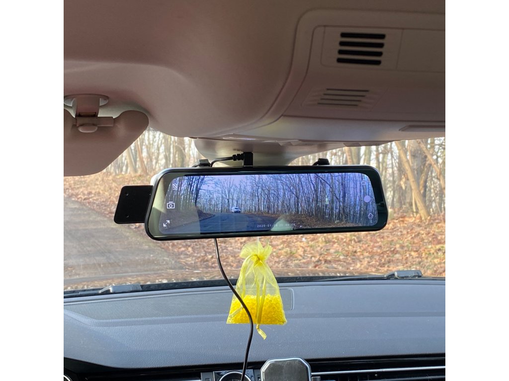 LCD monitor 9,66“ s vestavěnou duál FULL HD DVR autokamerou v elegantním provedení určený k montáží na originál zrcátko ve voze.