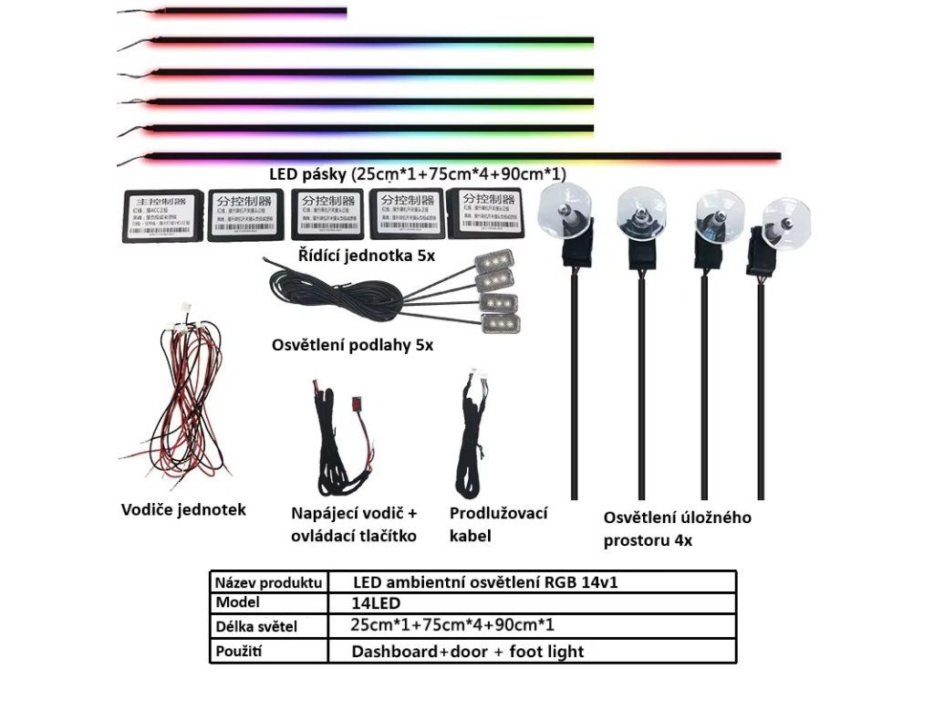 Kompletní kit 18-v-1: zahrnuje nasvícení palubní desky, dveří, prostoru nohou, odkládacích přihrádek, klik i prostoru u řidiče.