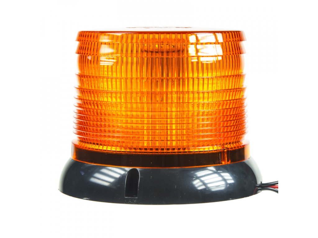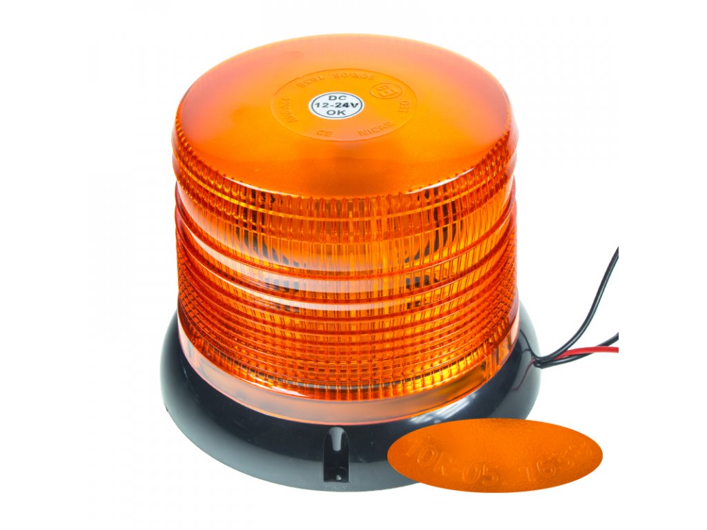 Výstražný oranžový maják s LED technologií a možností zábleskového nebo otočného provozu (dva ovládací vodiče). Určen pro pevnou montáž.