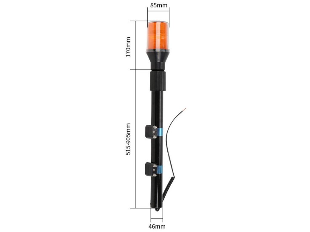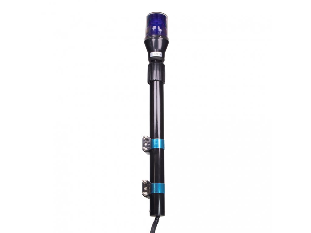 LED maják, 12V, 30LED modrý s teleskopickou tyčí na motocykl