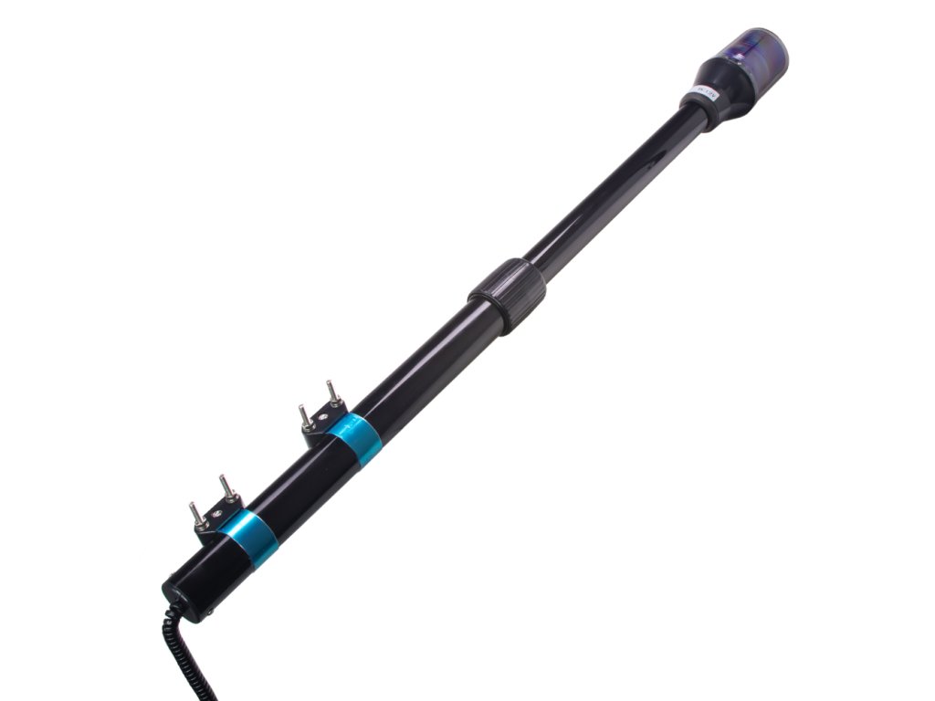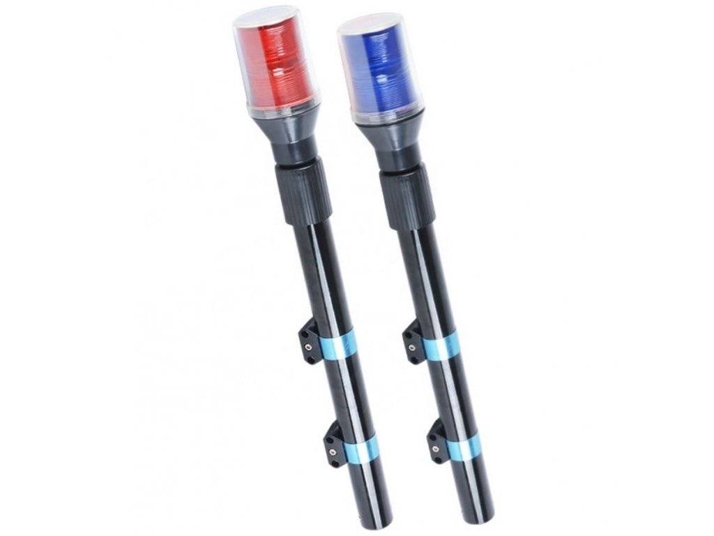 Profesionální modrý LED maják s výrazným výstražným efektem, s teleskopickou tyčí, určen pro montáž na motocykl.