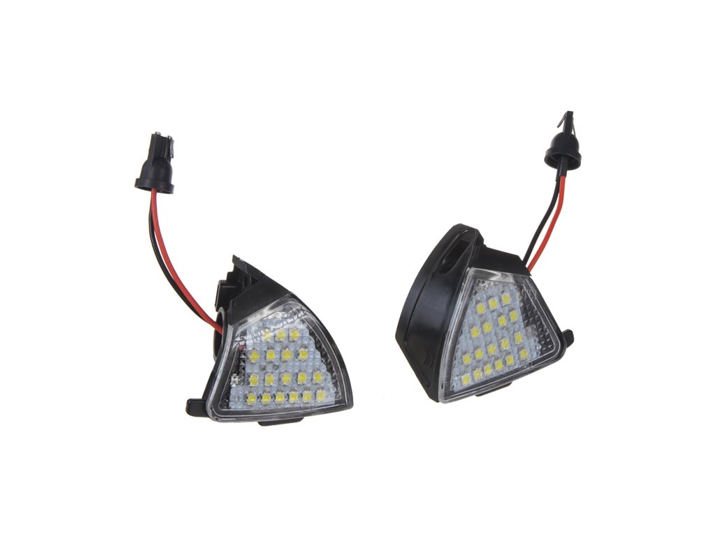 Náhrada originálního světla pro nastupování do zpětného zrcátka ve vozech koncernu VW. Jedná se o přímou náhradu, což zajišťuje jednoduchou montáž. Tyto LED světla dají vašemu vozu originální vzhled tím, že změní nažloutlé světlo klasické žárovky na velmi jasné bílé světlo vysoké intenzity podobné světlu z xenonů. .