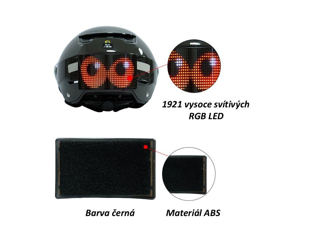 Tento LED panel je navržen jako externí doplněk na motocyklovou helmu, který slouží jako zadní světlo, směrovky a výstražný signalizační prvek a zároveň jako dekorativní světlo ovládané přes APP.