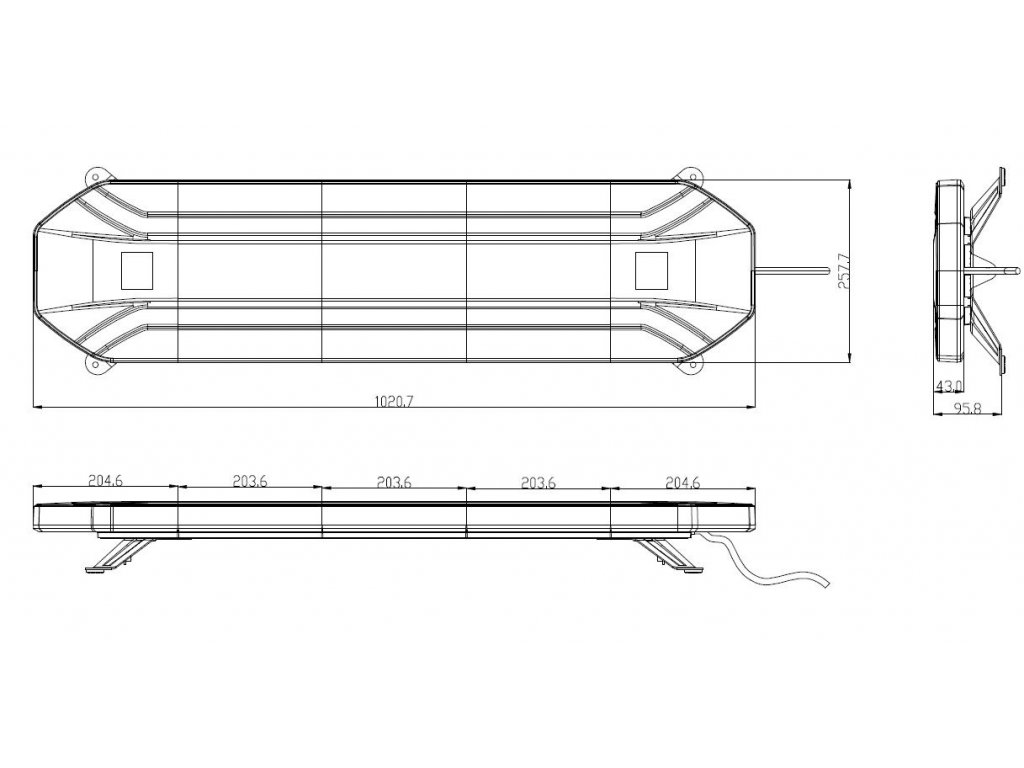 • rozměry: 1021 x 257 x 43 mm (výška včetně držáku 95,8 mm)