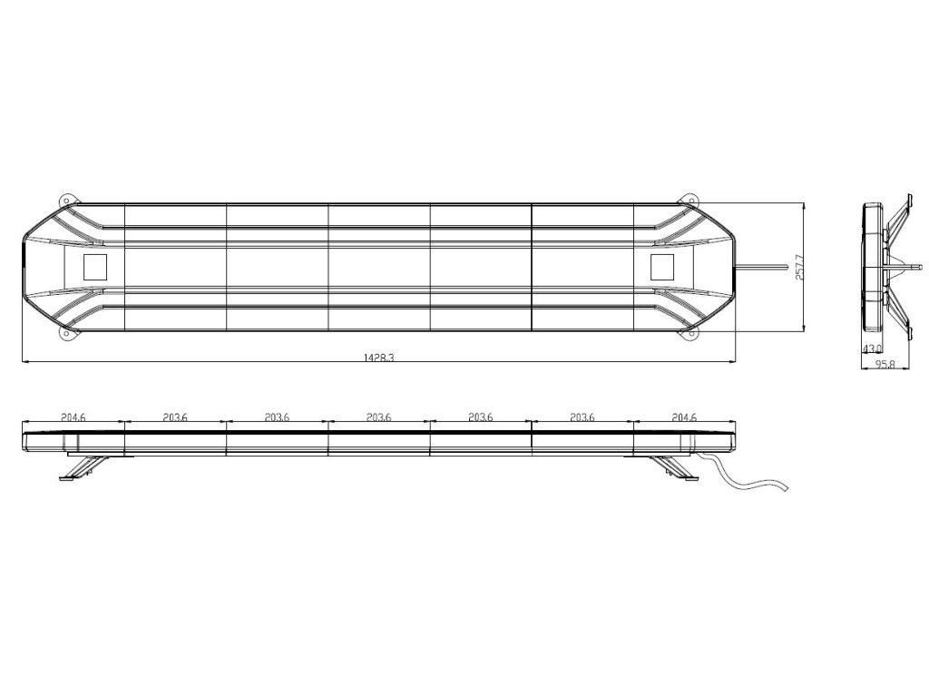 • rozměry: 1427 x 257 x 43 mm (výška včetně držáku 95,8 mm)