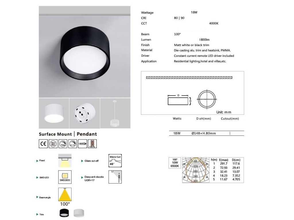 • určeno pro montáž na plochý strop