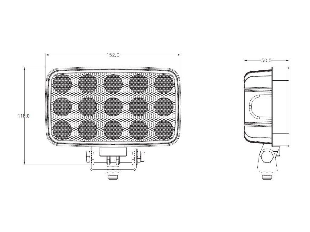 LED světlo obdélníkové, 15x3W, 152x118x50mm, ECE R10