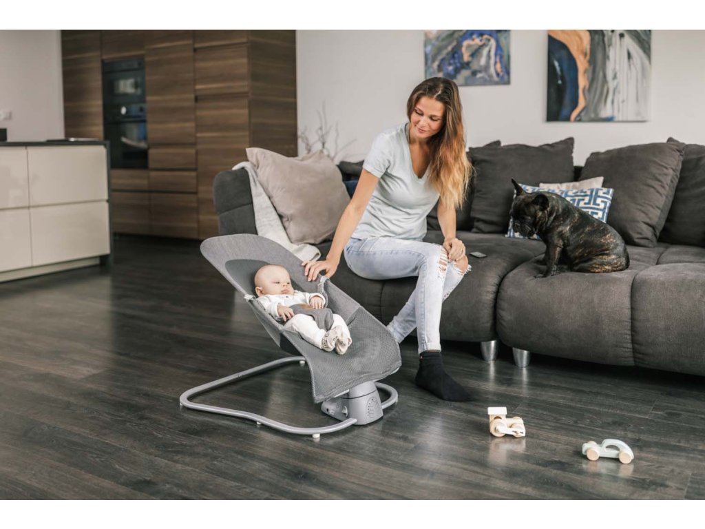 Zádová opěrka je polohovatelná do 3 poloh podle toho, zda chce miminko pozorovat svět kolem sebe, nebo spíše pospávat. Systém houpání je zajištěn dvěma způsoby – první je nezávislý na elektrické energii, kdy se lehačka rozhoupe pohyby dítěte, druhý je pak pomocí elektropohonu, který lehačku rozhoupe do stran. Elektrické houpání má 5 druhů intenzity, které lze libovolně volit podle toho, co je dítěti nejpříjemnější. Napájení je řešeno pomocí adaptéru, který se dodává v balení. Lehačka také obsahuje sloty na AAA baterie, takže lehačku můžete vzít sebou na cesty i tam, kde není dosah elektrických sítí. Součástí je také časovač s intervaly 8,15 a 30 minut. Užitečnou funkcí je automatické zapnutí, které se aktivuje ihned, když lehačka zaznamená pohyb dítěte. Všechny funkce lze ovládat přes panel v přední části nebo lze využít dálkový ovladač, který je součástí balení.