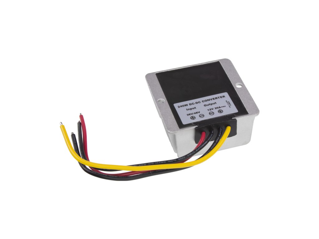 Měnič napětí umožňuje připojení 12 V spotřebičů do vozidla a zařízení s rozvodem 36/48 V. Technické parametry - vstupní napětí: 30-60 V DC - výstup: 12 V DC - výstupní proud: 20 A 240 W - rozměry: 74 x 74 x 32 mm - účinnost: 95 % - hmotnost: 300 g - maximální provozní te...
