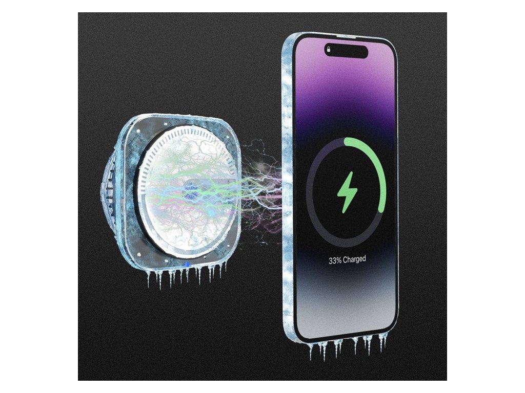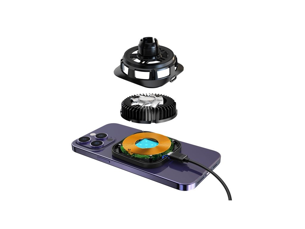 Součástí držáku je vestavěný Peltiérův článek s ventilátorem pro účinné ochlazování držáku, díky čemuž je bezdrátové nabíjení rychlejší a účinnější.