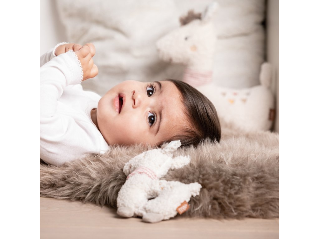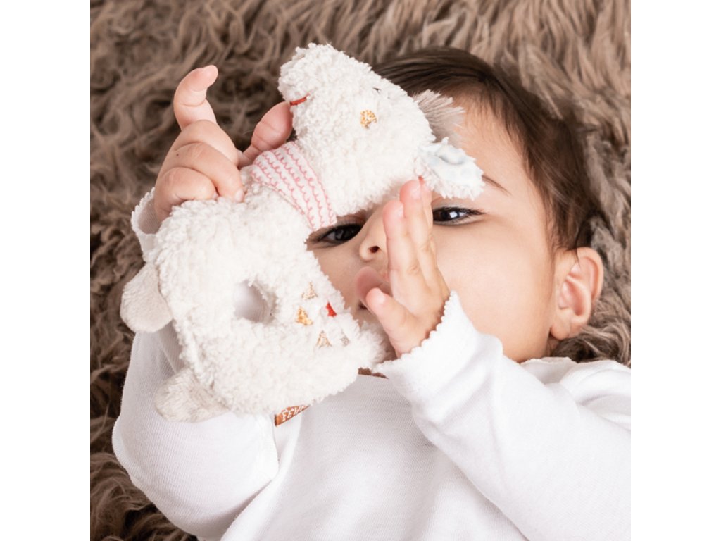Měkký kroužek v roztomilém provedení lamy si zamiluje každé děťátko. Na dotek je hračka příjemná a díky svému tvaru padne do každé ručičky. Neutrální barvy jsou vhodné jak pro holčičku, tak pro chlapečka. Hračka je zároveň chrastítko a tak zaujme nejen zvědavé dětské očka ale i jejich ouška.