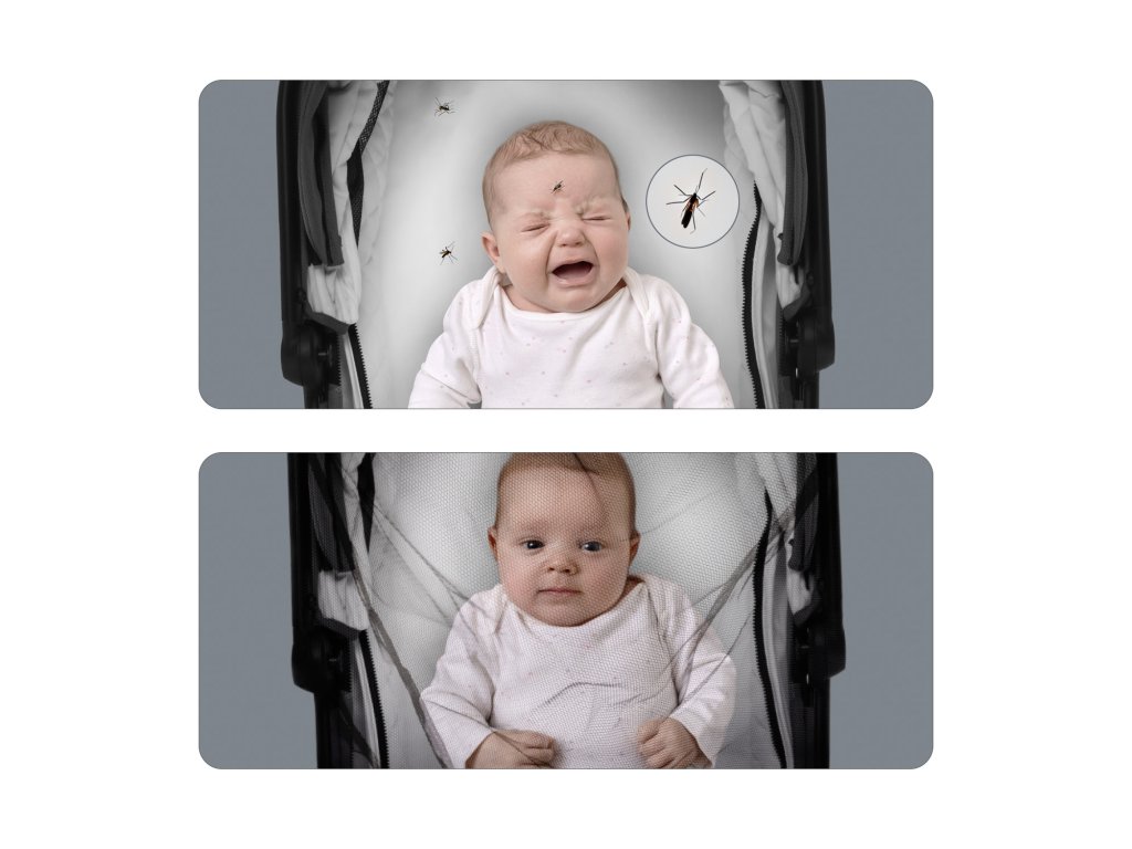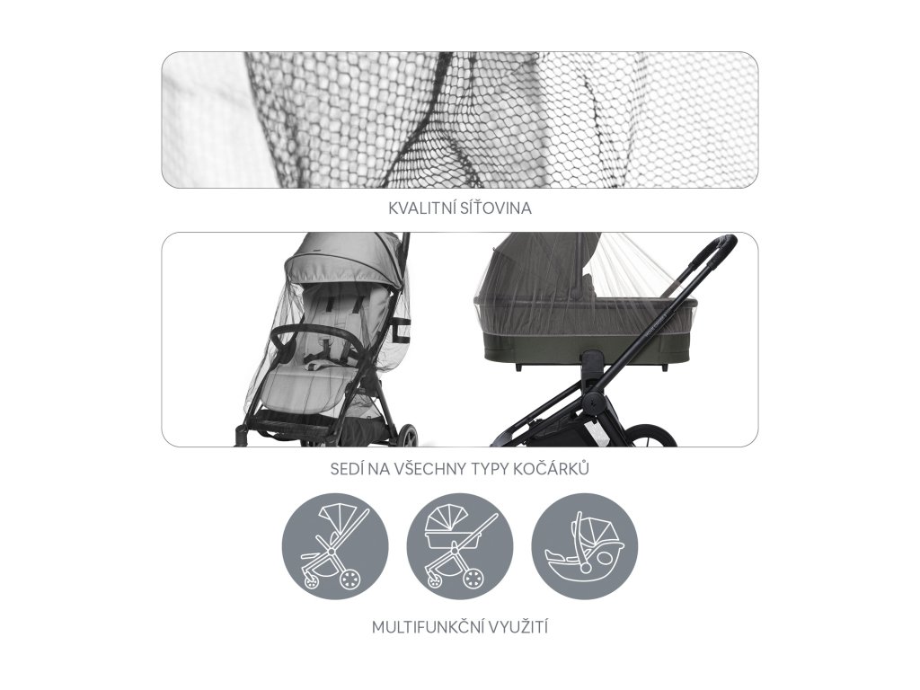 Ultrajemná síťovina umožňuje ventilaci čerstvého vzduchu, ale zároveň spolehlivě chrání před hmyzem. Elastické okraje usnadňují a zrychlují nasazení, takže moskytiéru jednoduše natáhnete kolem kočárku pro bezpečné uchycení. Užijte si klidné a bezpečné procházky bez obav o své děťátko.