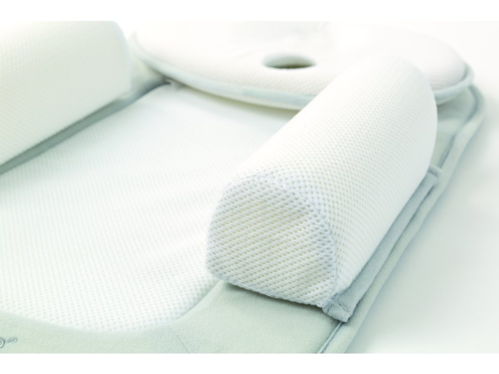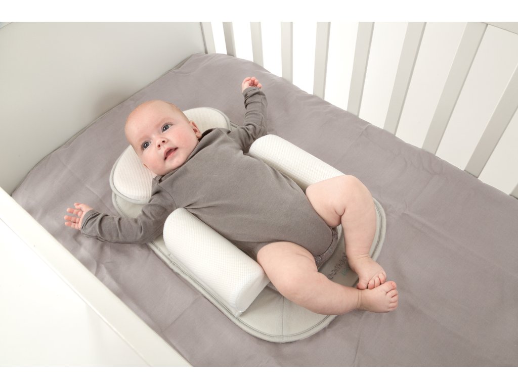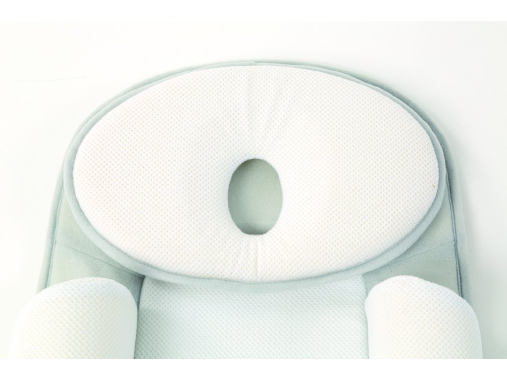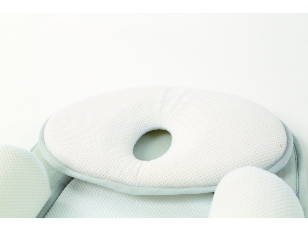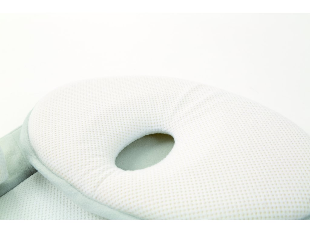 na ergonomickém polštáři, aby se zabránilo riziku ploché hlavy.