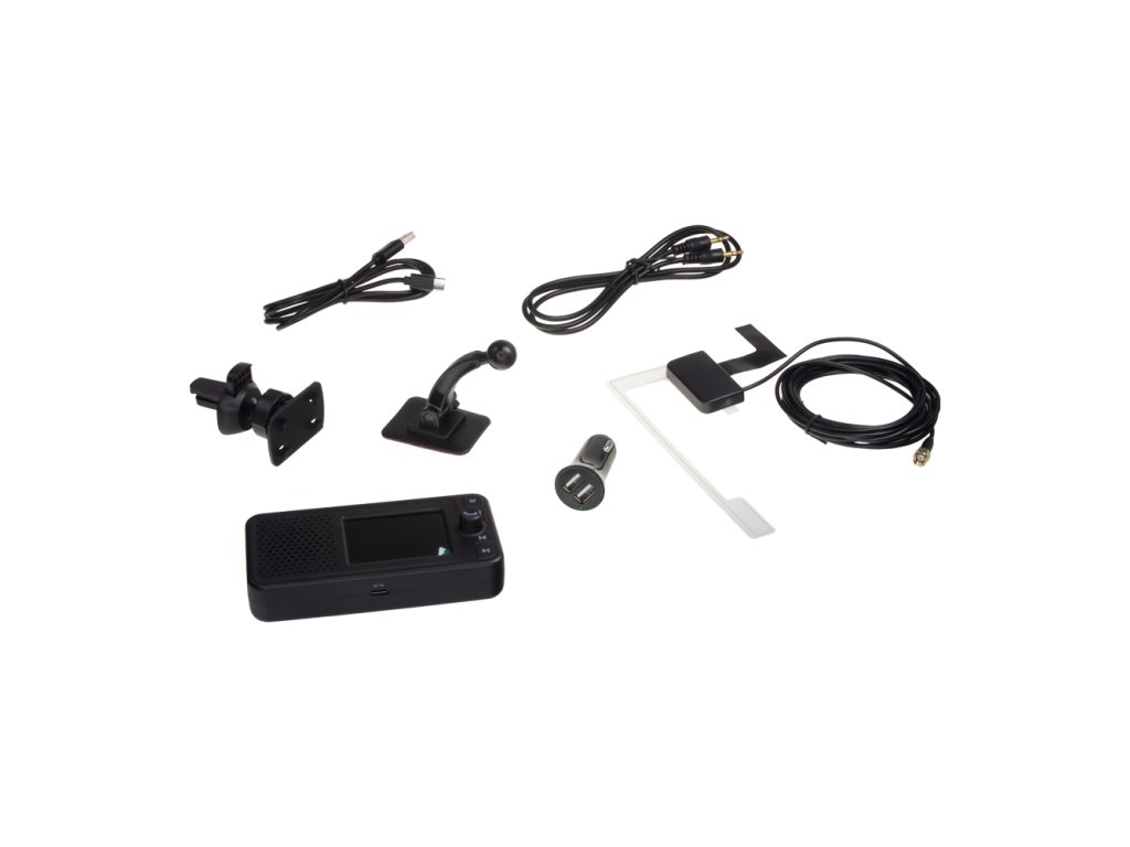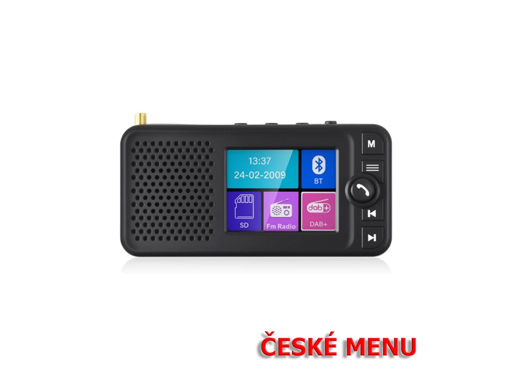 Tento přijímač umožní přijímat digitální rozhlasové vysílání DAB / DAB+ a příjem FM. Přenos zvuku do autorádia probíhá přes FM modulátor nebo pomocí AUX výstupu, pro venkovní použití je integrován reproduktor.