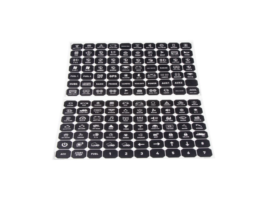 Snadno nainstalujete do 12 V a 24 V vozidel. Je vhodný pro různé typy automobilů, terénní vozidla, pickupy, nákladní vozy atd. Různé spínače pro ovládání obecného elektrického vybavení ve vozidle: světlomety a jiná zařízení. Ovládací panel lze instalovat na přístrojovou desku, středovou konzolu, sedadlo, strop, A-sloupek ve vozidle atd. Přizpůsobitelné samolepicí štítky, které vám pomohou určit každé tlačítko podle vašich konkrétních potřeb (celkem 140 ks).