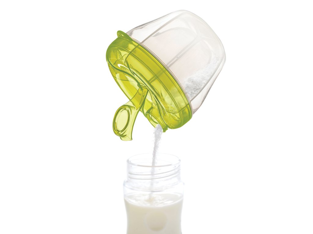 Tento praktický dávkovač je vhodný pro rychlé, pohodlné a přesné dávkování sušeného mléka. Hodí se nejen pro domácí využití, ale také na cestách. Aby bylo možné připravit správné množství mléka v lahvi, stačí otočit uzávěr jednoho prostoru.