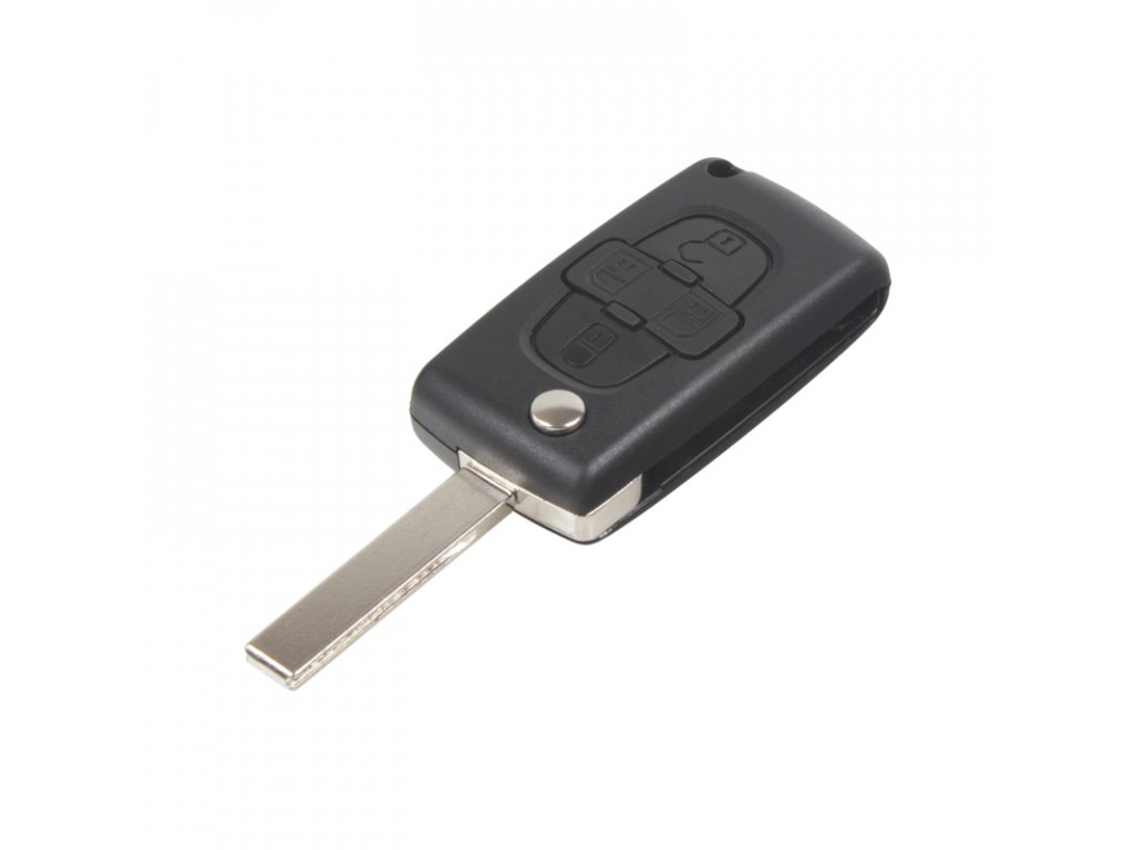 Náhradní vystřelovací autoklíč s dálkovým ovladačem pro vozy Peugeot / Citroën. Součástí klíče je planžeta, dálkové ovládání centrálního zamykání se 4-mi tlačítky a čip ID 46 pro imobilizér. Náhrada originálního ovladače.