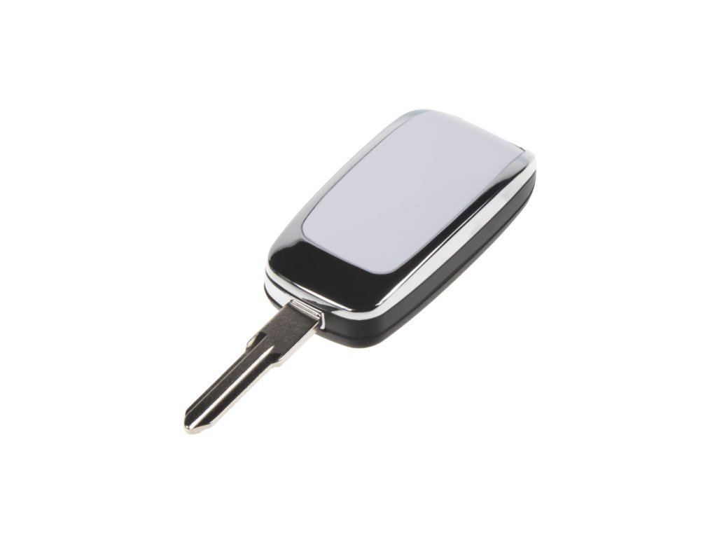 Náhradní klíč s dálkovým ovladačem pro vozy Renault. Součástí klíče je planžeta klíče, dálkové ovládání centrálního zamykání se dvěmi tlačítky (čip PCF7961M).
