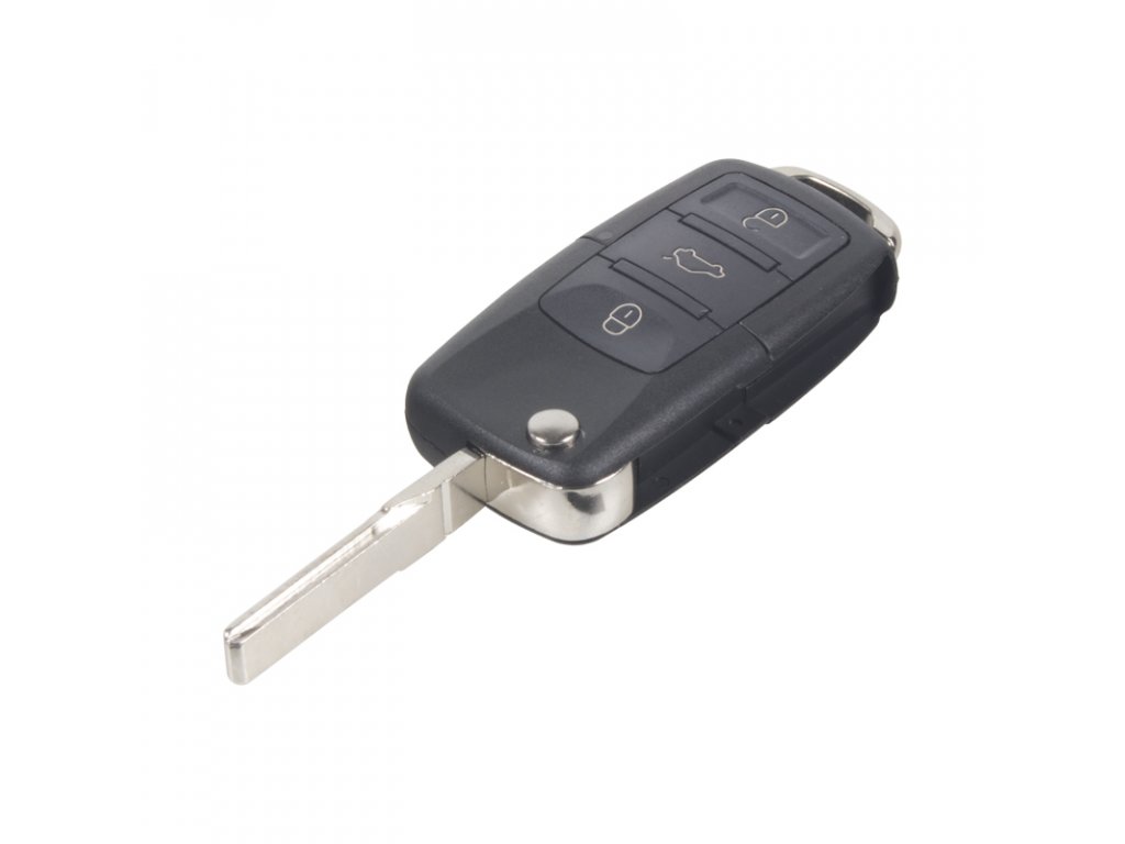 Náhradní vystřelovací autoklíč s dálkovým ovladačem pro vozy koncernu VW. Součástí klíče je planžeta, dálkové ovládání centrálního zamykání se třemi tlačítky a čip ID 48 pro imobilizér. Planžetu klíče je třeba nechat vyfrézovat podle tvaru originálního klíče, vyřezaný klíč s čipem je nutno naprogramovat do řídící jednotky vozu a dálkové ovládání je třeba spárovat s komfortní jednotkou vozu.
