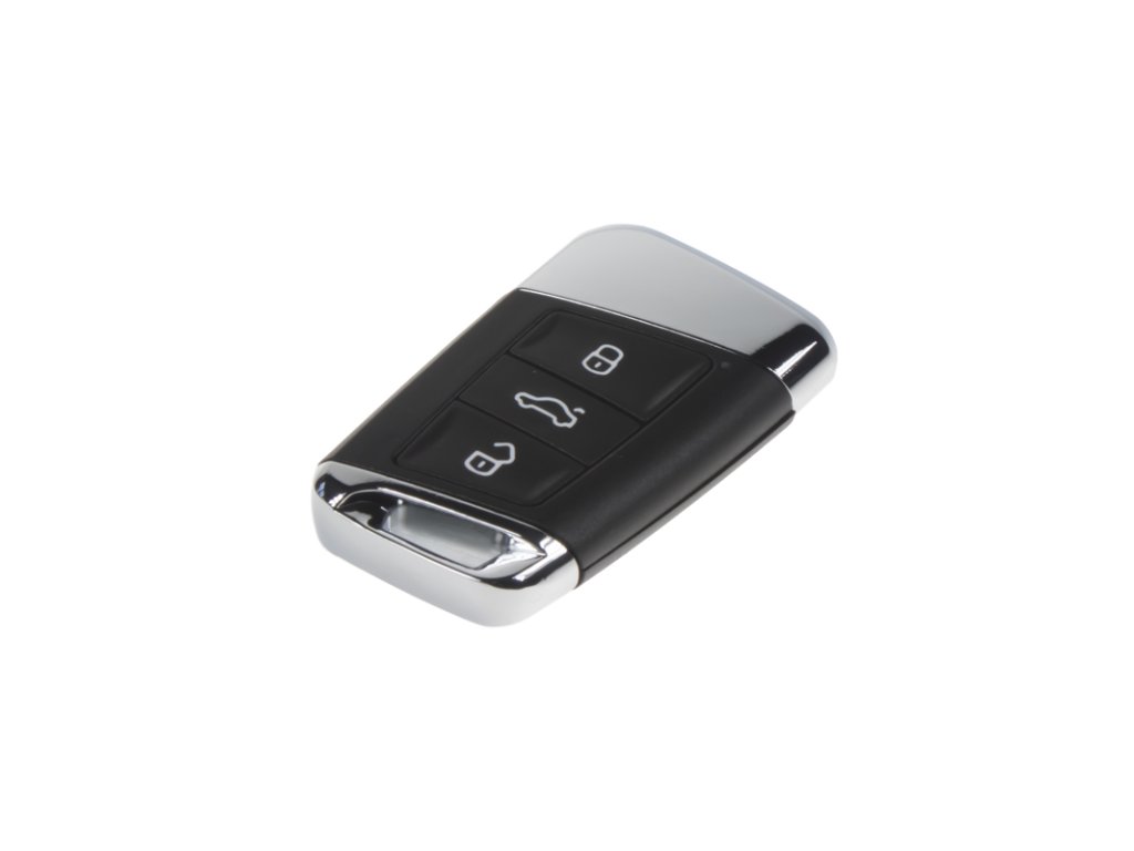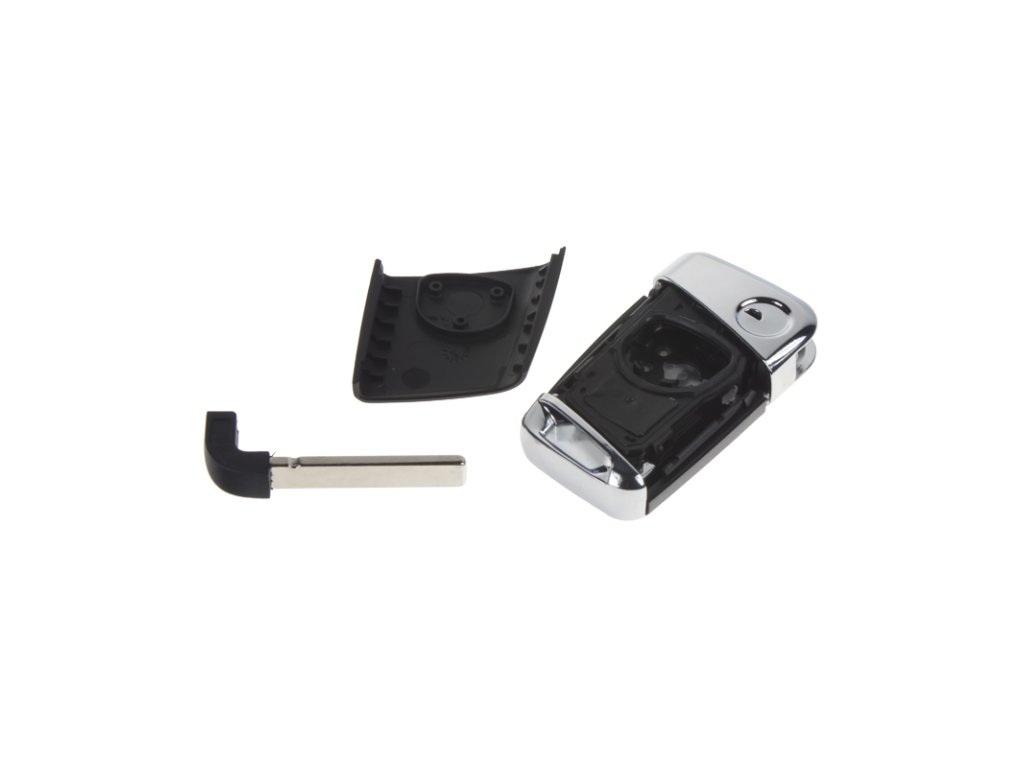 Náhradní obal vystřelovacího klíče pro VW Passat 2015- s 3-tlačítkovým ovladačem (bez elektroniky a čipu imobilizéru). Do klíče je nutno vložit z původního klíče elektroniku dálkového ovládání a čip imobilizéru (transpondér), planžetu klíče je třeba nechat vyfrézovat podle tvaru originálního klíče.