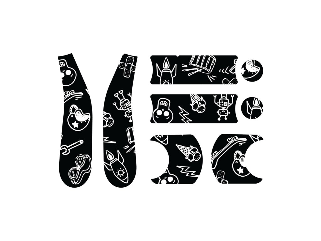 Prémiové nálepky na tříkolku Liki s designem černobílé skici.