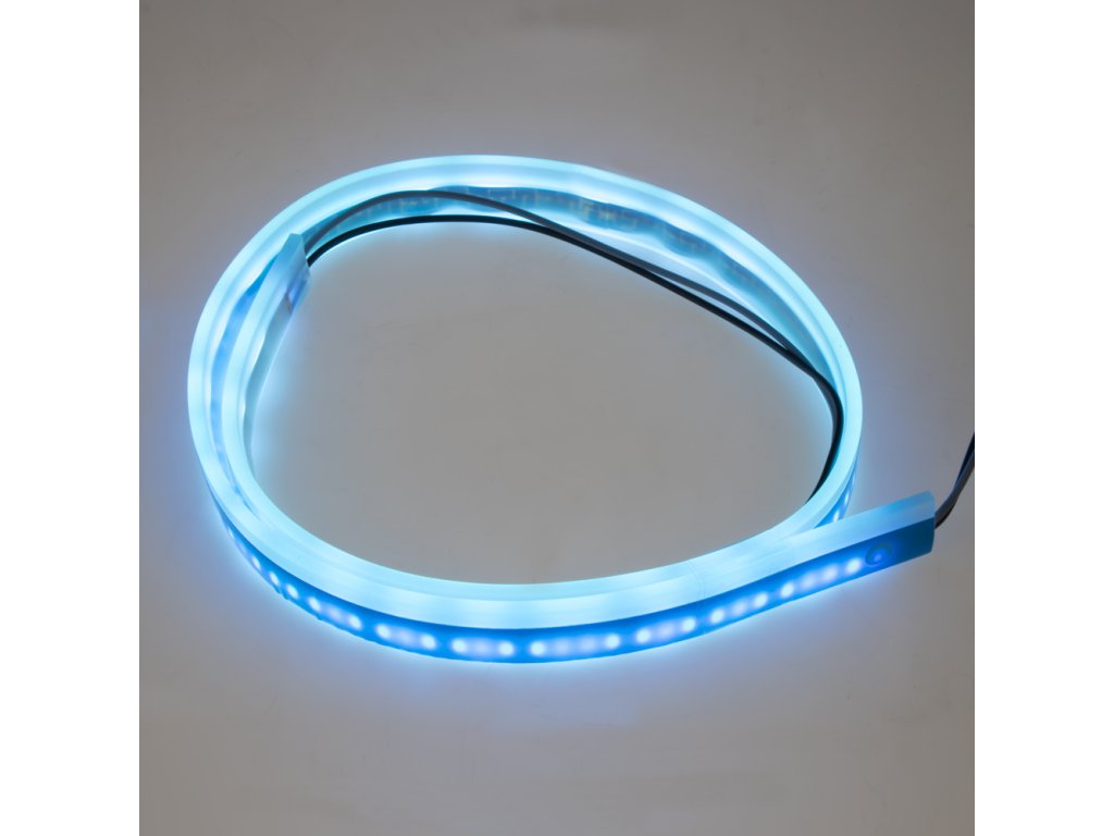 LED silikonový extra plochý světelný pásek (LED strip) - barva ledově modrá.
