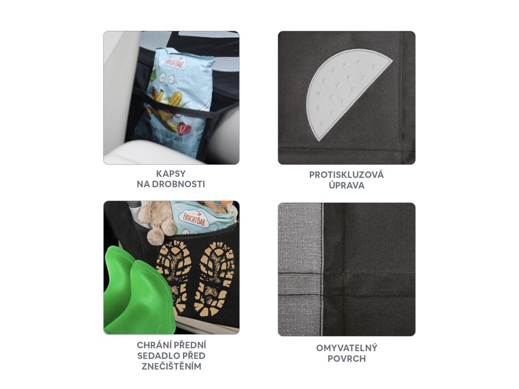 STOP klouzání: Už žádné starosti s klouzáním dětských autosedaček! Protiskluzový povrch s texturou zajišťuje, že autosedačka zůstane pevně na svém místě. Záložka na zadní straně poskytuje dodatečnou stabilitu, takže vaše dítě cestuje bezpečně.