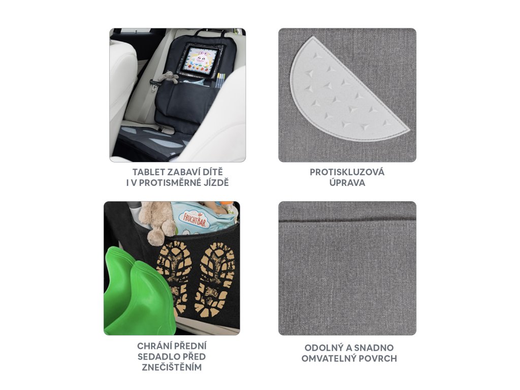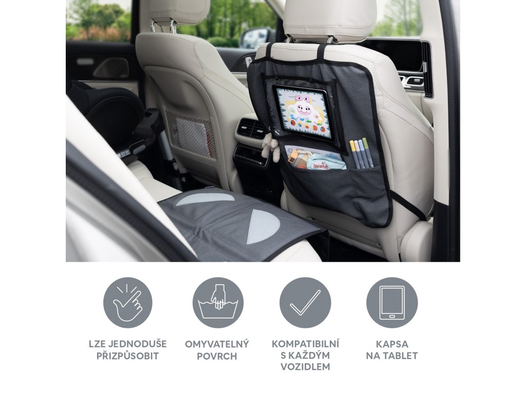 Ochrana sedadla pod autosedačku s kapsou na tablet omyvatelná