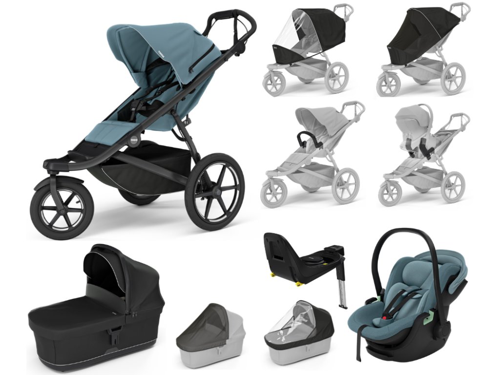 Originální set THULE 10 v 1 Mid Blue, Black, Mid Blue Celoodpružený ikonický kočárek do každého terénu