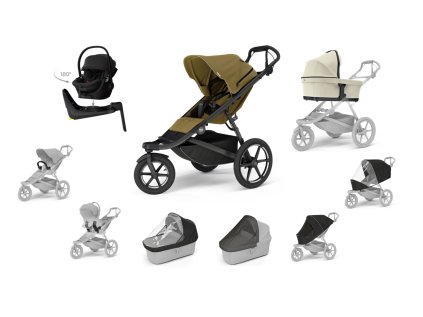 Originální set THULE 10 v 1 Mist Green,Tinted Taupe, Mid Blue Celoodpružený ikonický kočárek do každého terénu