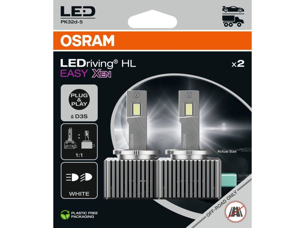 Až o 180% vyšší jas (1) zajišťuje OSRAM LEDriving HL EASY XEN jako kompaktní LED náhrada za běžné výbojky do dálkových a potkávacích světel.