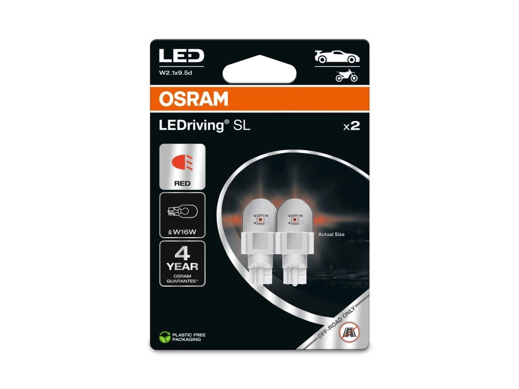 OSRAM LED 12V W16W W2,1x9,5d červená (2ks) Duo-blister