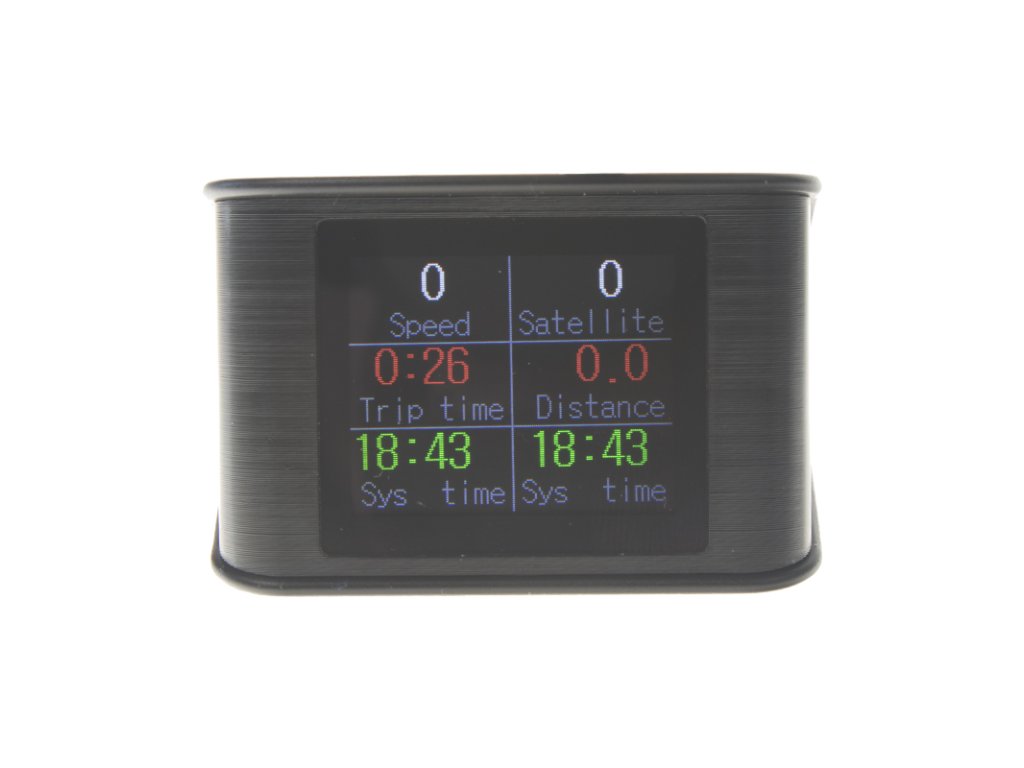 • displej zobrazuje: rychlost, hodiny, počet satelitů, směr jízdy, napětí baterie, nadmořskou výšku, doba jízdy