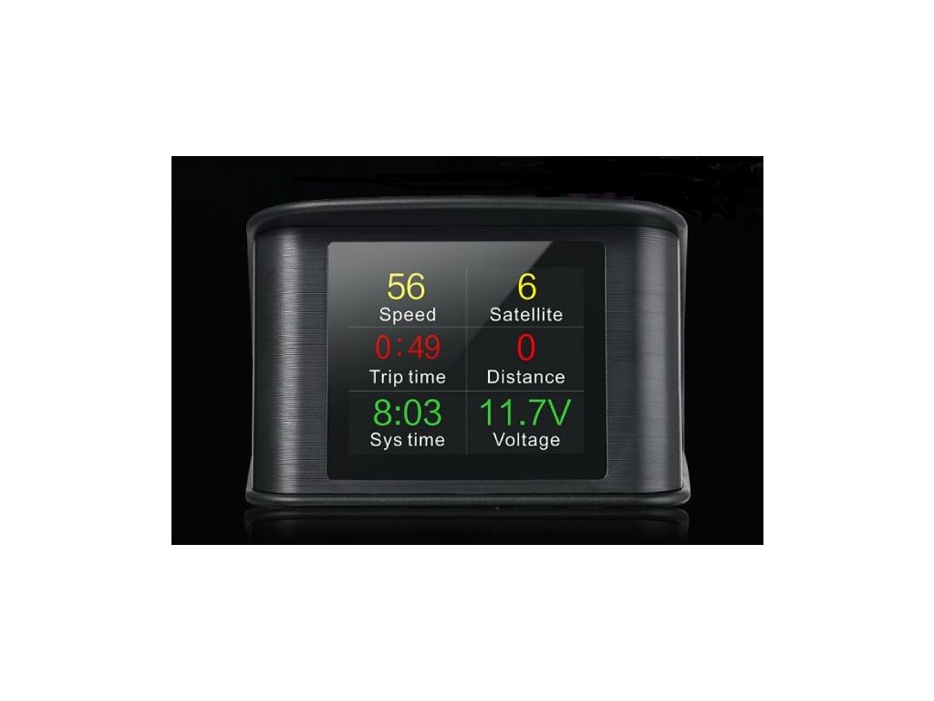 Palubní displej (počítač), během jízdy zobrazuje údaje o rychlosti, napětí baterie a další údaje na přehledném barevném LCD displeji. Displej se připojuje pouze na napájecí napětí ve voze a veškeré údaje si zjišťuje sám podle signálu GPS. Funkce: • 2,6“ displej LCD, barevný s velkým rozli...