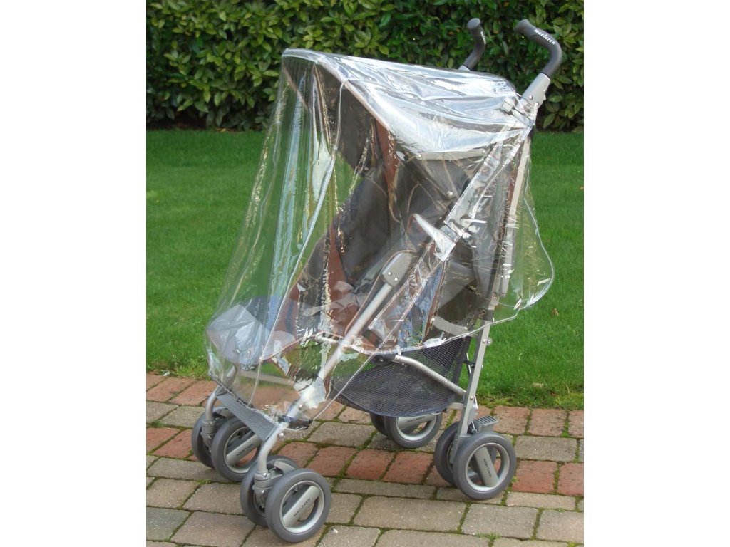 Univerzální, flexibilní, průhledná pláštěnka pro ochranu kočárku a částí korby před nepříznivým počasím.