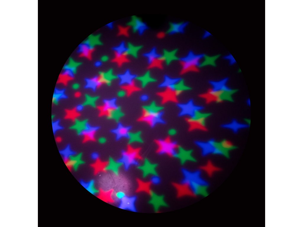 Projektor a hudba fungují po vložení baterek a mají automatické vypínání.
