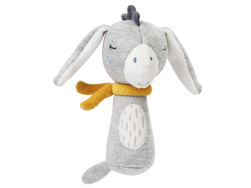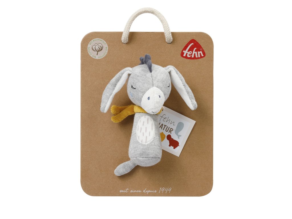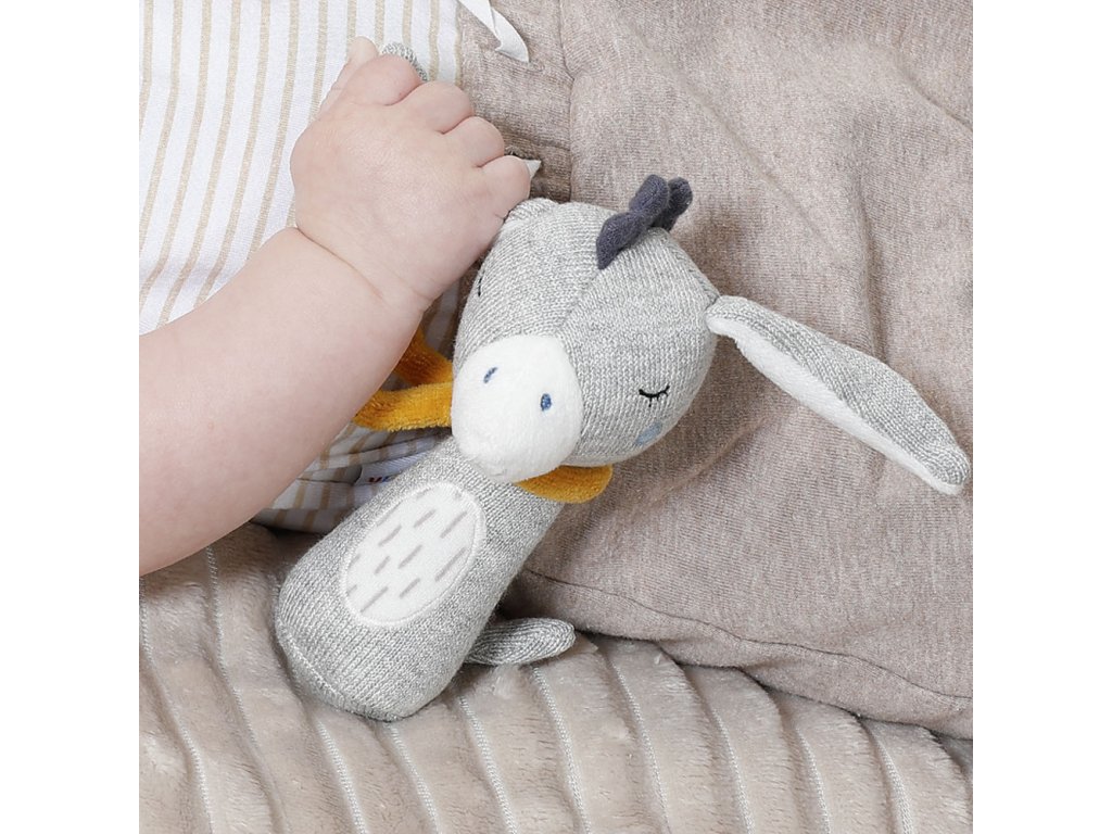 Plyšová hračka oslík Motorická hračka pro učení a zábavuMěkký roztomilý oslík je vyrobený z certifikované organické bavlny a stane se věrným společníkem miminka. Hračka s chrastítkem podporuje hmat a sluch dítěte, stejně jako jeho motorické dovednosti. Rozvíjí také fantazii a pomáhá dítě mot...