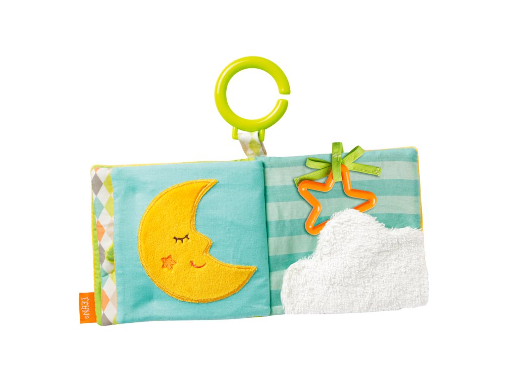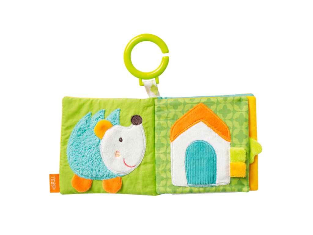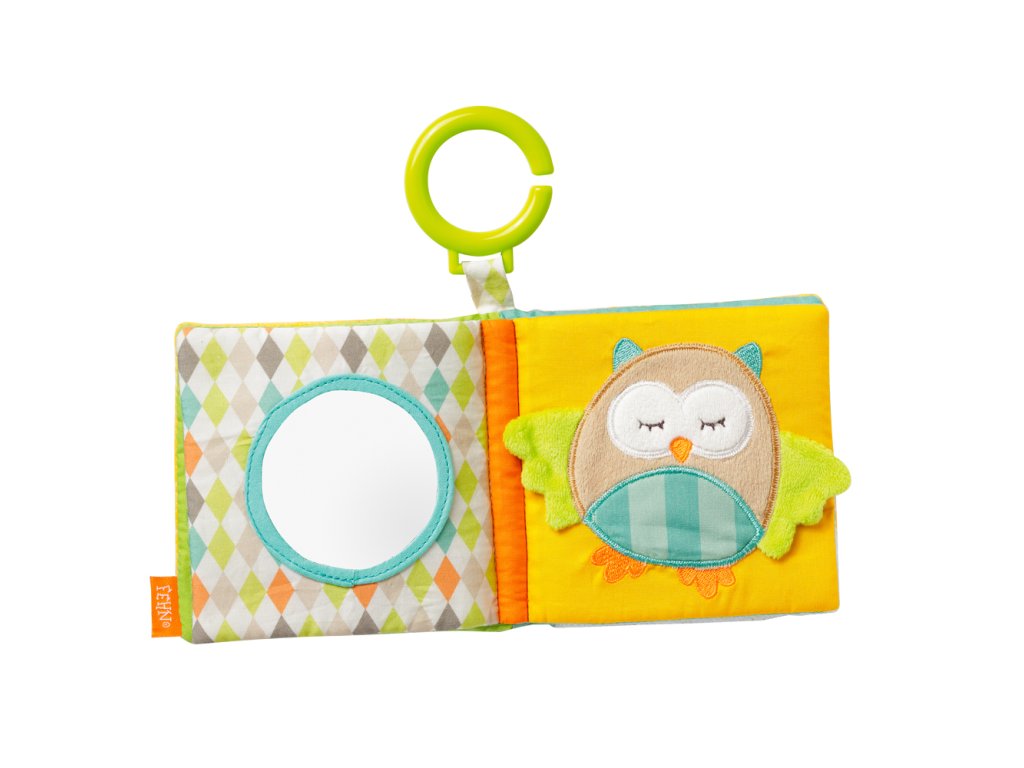 - První knížka Vašeho děťátka. - Šest vtipných stránek zaručí, že se Vaše dítě nebude chtít své první knihy vzdát. - Díky praktické možnosti přichycení doprovází tato hračka Vaše děťátko všude, ať už přichycená na kočárku, v autosedačce nebo na postýlce. - Funkce: Pískátko, zrcátko a šustící pa...