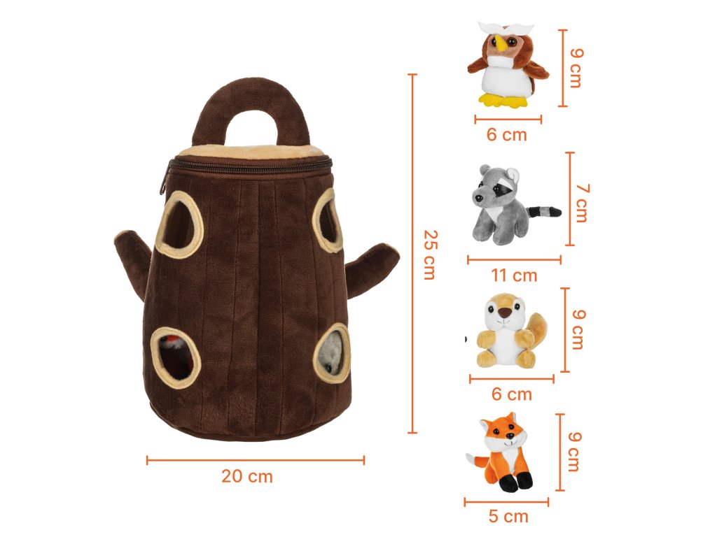 Objevte svět zábavy a učení s plyšovým setem pro nejmenší. Každý tematický domeček ukrývá čtyři roztomilé zvířecí kamarády a slouží jako hrací kufřík i rozvojová hračka podporující jemnou motoriku a představivost.